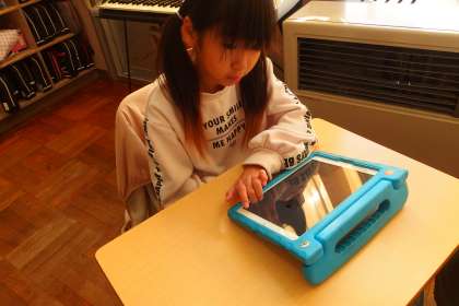デジタルドリル(Qubena)に取り組む3年生です。