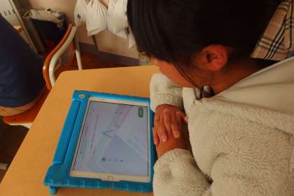 デジタルドリル(Qubena)に取り組む3年生です。