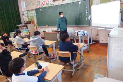 6年生の国語の授業です。 スクリーンに映っているのはデジタル教科書です。