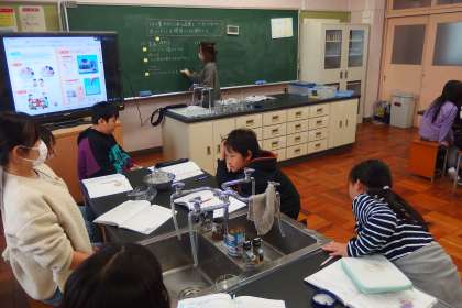 5年生の理科の授業です。 実験の流れをデジタル教科書で確認しています。