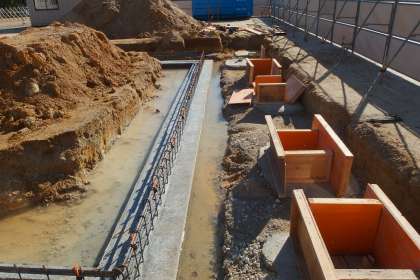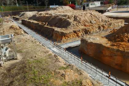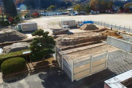 今日の校舎増築工事の様子です。 ずいぶんと基礎部分ができあがってきました。