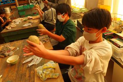 シーサーづくりに挑戦している6年生です。