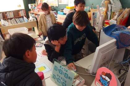 5年生の国語の授業です。 パソコンを操作して本を借りたり、本を検索したりしていました。