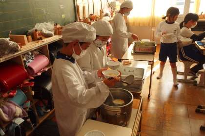 給食の配膳の様子です。