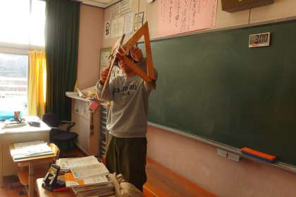 デジタル教科書の例示よりも鮮やかに三角定規をあやつっています。