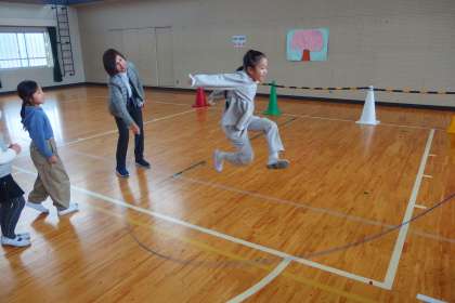 明日は縄跳び大会「大なわエイト」です。 練習に励む2年生です。
