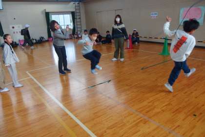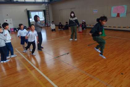 明日は縄跳び大会「大なわエイト」です。 練習に励む2年生です。