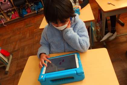 デジタルドリル(Qubena)に取り組む3年生です。