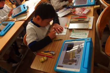 12月10日の東広瀬小学校 公開日 2024/12/10 更新日 2024/12/10 活動の様子 2年生の生活科の授業です。 年賀状を書いていました。 タブレットを参考にして「巳年」のイラストを上手に描いていました。