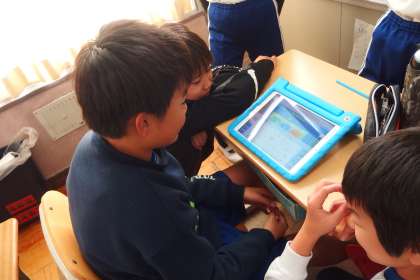 12月10日の東広瀬小学校 公開日 2024/12/10 更新日 2024/12/10 活動の様子 4年生の総合的な学習の時間です。 1台のタブレットをみんなで囲み、あれやこれや意見を出し合っていました。