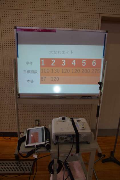 記録の推移をタブレットから映し出してすぐにみられるように工夫していました。