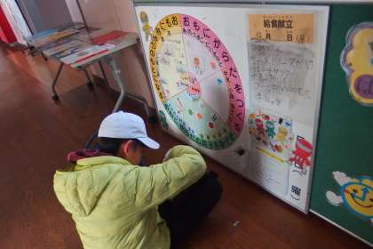 給食の献立情報や栄養情報を記入している保健給食委員です。