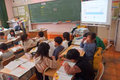 スクリーンに提示されているのはデジタル教科書の資料です。