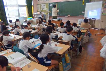 2年生の算数の授業です。 スクリーンに映っているのはデジタル教科書・・・まだ映っていないですね。