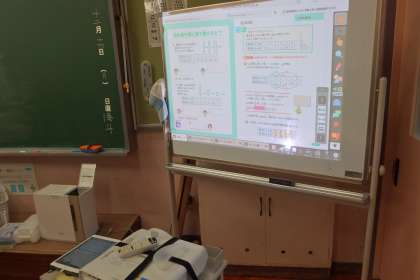 6年生の算数の授業です。 デジタル教科書の内容から、比率の学習をしていると思われます。