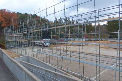 今日の校舎増築工事の様子です。 足場が立ち上がり始めました。