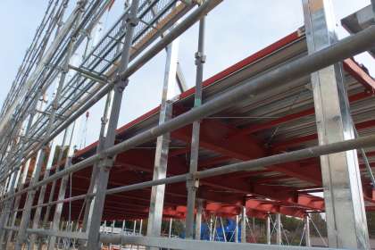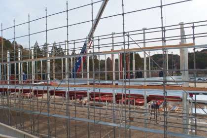 今日の校舎増築工事の様子です。 2階の床がどんどんできあがっていきます。