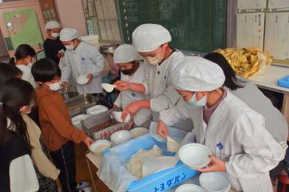 給食の配膳の様子です。