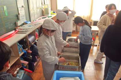 給食の配膳の様子です。
