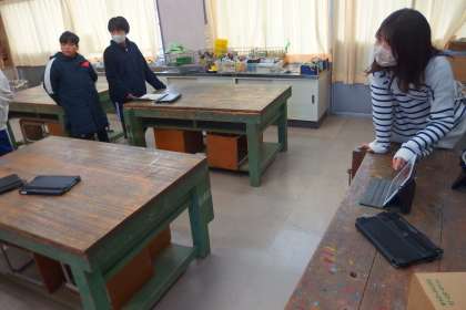 保健給食委員会が発表の練習中です。 ここでもタブレットを活用して練習を進めていました。