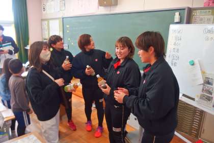 トヨタ自動車のソフトボールチームであるトヨタレッドテリアーズから4名の選手が来校してくれました。