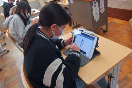 6年生の図工の授業です。 彫塑の作品作りのためにタブレットで下書きをしていました。