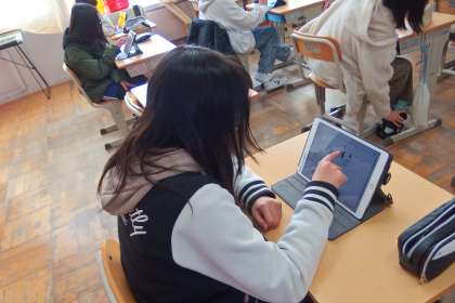 6年生の図工の授業です。 彫塑の作品作りのためにタブレットで下書きをしていました。
