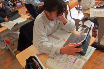 1月20日の東広瀬小学校 公開日 2025/01/24 更新日 2025/01/24 活動の様子 5年生の算数の授業です。 タブレットのアプリformsを使って、比率や割合、グラフの描画について学習していました。