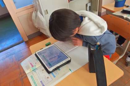 1月20日の東広瀬小学校 公開日 2025/01/24 更新日 2025/01/24 活動の様子 5年生の算数の授業です。 タブレットのアプリformsを使って、比率や割合、グラフの描画について学習していました。