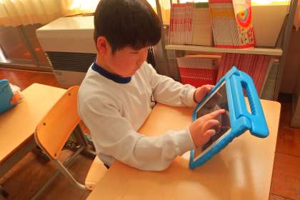 1年生の算数の授業です。 タブレットのアプリで復習をしています。