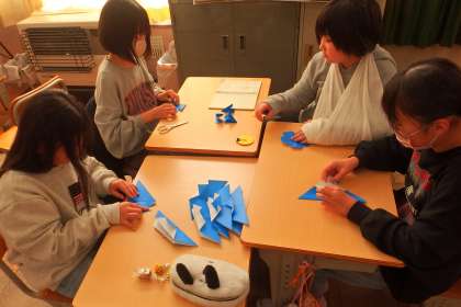 6年生を送る会の準備をしている5年生です。