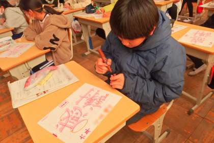 6年生の書写の授業です。 練習している文字は「感謝」でした。 この時期の6年生にぴったりの言葉ですね。
