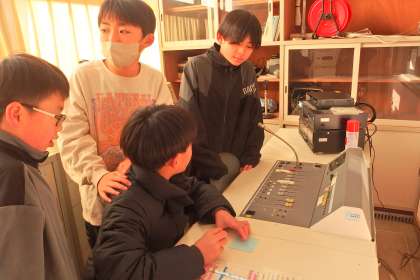 お年玉募金への協力放送でを呼びかけている6年生です。