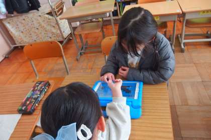 タブレットでプログラミングのアプリをしている1年生です。