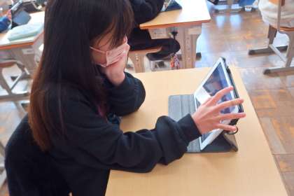 タブレットの気づきメモを使って意見を共有しています。