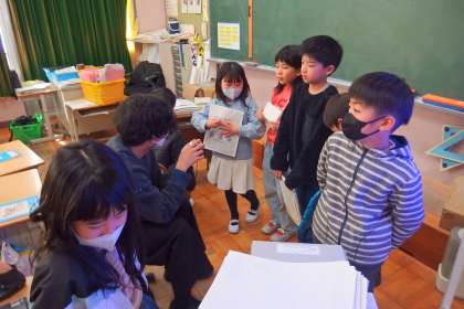 学習発表会に向けての準備で話し合いをしている2年生です。