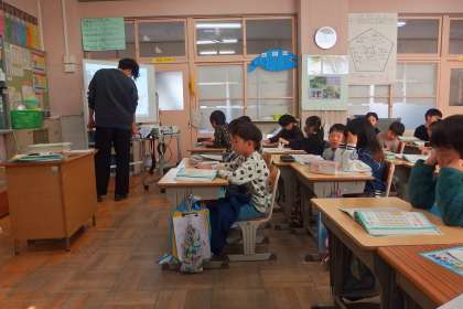 タブレットをプロジェクターに接続して授業の準備をしているところです。