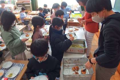 給食の配膳の様子です。