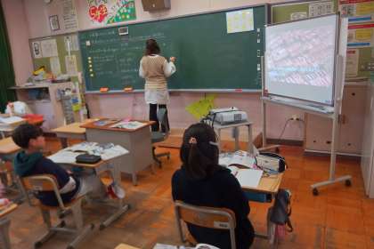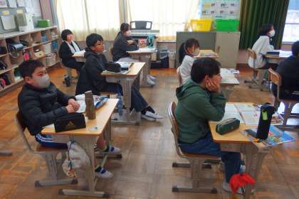 5年生の社会の授業です。 スクリーンに映っているのは デジタル教科書です。