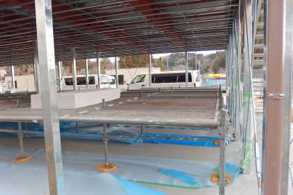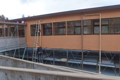 今日の校舎増築工事の様子です。 エアコンの配管工事をしているように見えました。