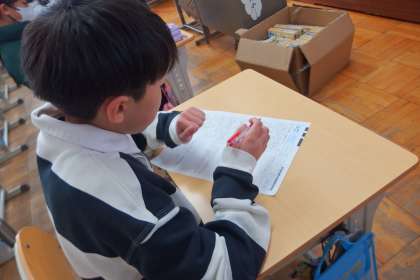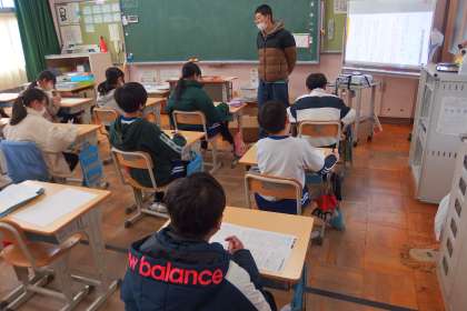 6年生の国語の授業です。 スクリーンに映っているのはデジタル教科書です。