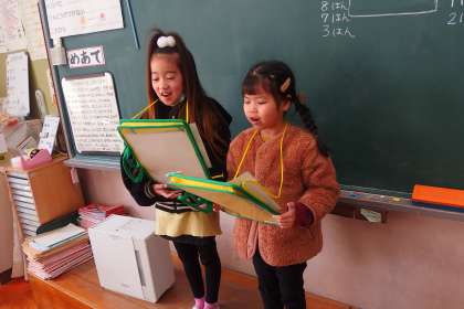 直前まで学習発表会の準備を進めている1年生です。