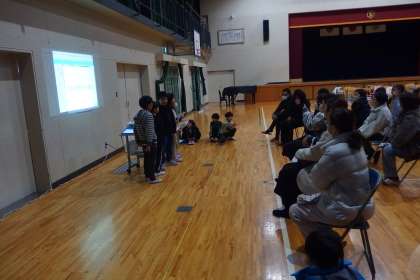 学習発表会でした。 タブレットを上手に活用して発表を行う2年生です。