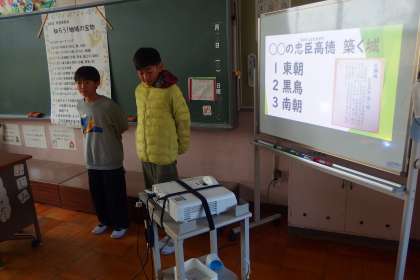 学習発表会でした。 タブレットを上手に活用して発表を行う6年生です。