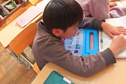 タブレットのアプリを使って復習をしています。