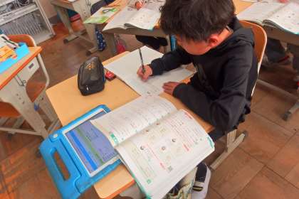 タブレットの電子連絡板機能で学習方法や内容を確認しながら取り組んでいます。