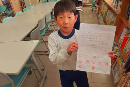 現在、図書委員会の主催でおいでん月間が継続中です。 「本の種類ビンゴ」に挑戦しています。