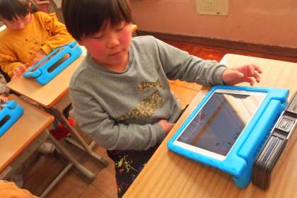 1年生がタブレットを使ってプログラミングを学習しました。