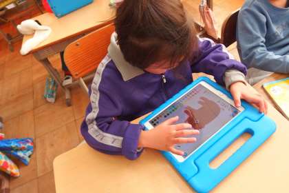 1年生がタブレットを使ってプログラミングを学習しました。