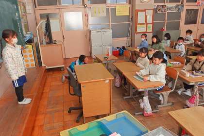 1年生の朝の会の様子です。